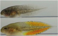 オタマジャクシの尾はヤゴがいると赤くなる